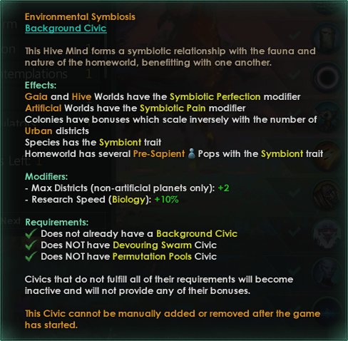 This civic already made sense as the “background” of your Hive Mind, but now your Pops will also produce some free Society Research! And you get some free Pre-Sapients (yes, they also produce research, so perhaps it’s worth it to keep them?)