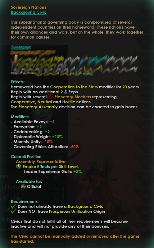 As mentioned in the last post, background civics expand upon (you guessed it) the background of an empire, a sort of inbetween of an origin and standard civic.