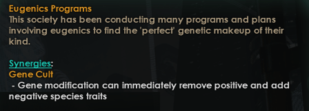The very nice thing about how this is done, is that as only the civic description is required for this information, ANY civic, including other mod or vanilla civics, can be made a part of a synergy without overwriting the civics themselves!